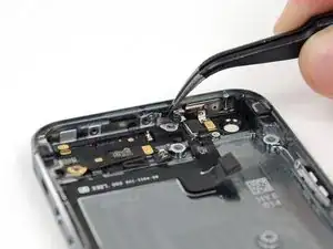 Удалите винт Phillips #000 1.7 мм, фиксирующий вибромотор к задней крышке.