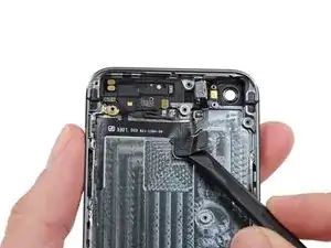 Снимите металлический кронштейн разъема аккумулятора с iPhone.