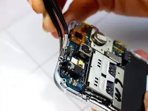 Используйте пинцет, чтобы выдвинуть кнопку питания из углубления.