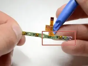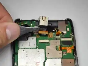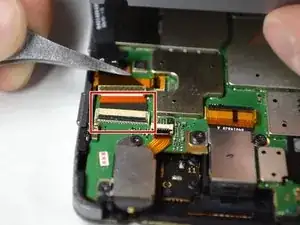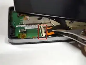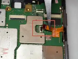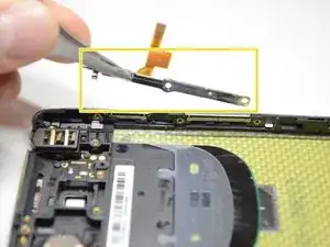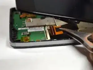 С помощью пинцета снимите гибкий кабель кнопок питания/громкости.