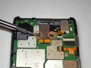 Вам потребуется отключить заднюю камеру от её разъёма на материнской плате.