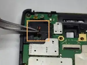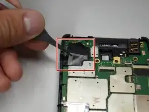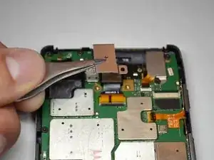 С помощью пинцета снимите металлический экран, защищающий заднюю камеру.