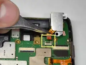 С помощью пинцета отодвиньте клейкую ленту, закрывающую разъём динамика.