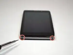 Удалите два винта 4,5 мм в нижних левом и правом углах устройства с помощью отвертки Torx T4.