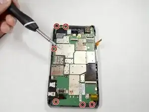 Удалите шесть винтов 3,5 мм Torx T4, фиксирующих материнскую плату к корпусу устройства.
