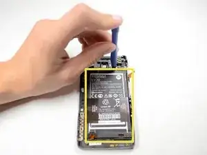 Используйте пластиковый инструмент для открытия, чтобы приподнять батарею от корпуса устройства.