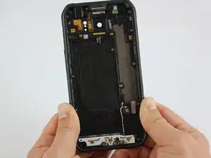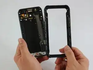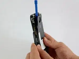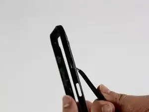 Когда появится достаточно большой зазор, вставьте пластиковый инструмент между рамкой и пластиковой крышкой и проведите им по всему телефону, чтобы разделить оба компонента.
