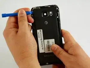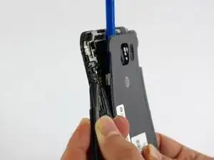 Вставьте пластиковый инструмент между рамкой телефона и задней крышкой в верхнем левом углу.