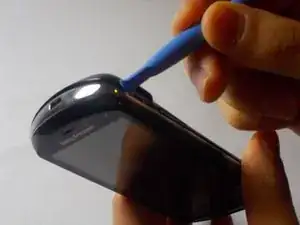 Вставьте пластиковый инструмент для открытия между двумя половинами корпуса. Подденьте вокруг телефона, чтобы отсоединить заднюю крышку.
