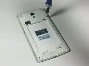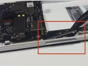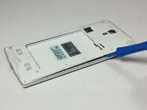 Вставьте пластиковый инструмент для вскрытия под шасси рядом с кнопкой питания и отожмите шасси от телефона. Для этого может потребоваться небольшое усилие.