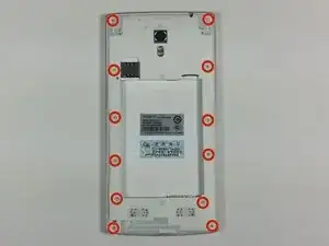 Снимите двенадцать открытых винтов сзади телефона, 3.6 мм Phillips, с помощью отвертки Phillips 3.6 мм.