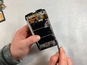 Аккуратно подденьте материнскую плату из рамки с помощью пластикового инструмента для открытия.