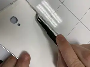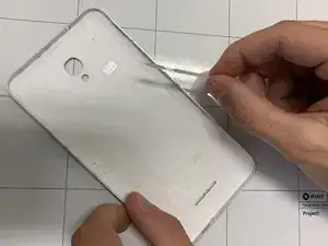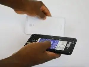 Начните с того, что снимите заднюю панель телефона. Нажмите ногтем или тонким предметом в нижнем правом углу телефона и аккуратно надавите, чтобы освободить заднюю панель от корпуса.