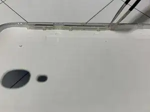 Удалите средний элемент резинки на кнопке включения/регулировки громкости с помощью пинцета.