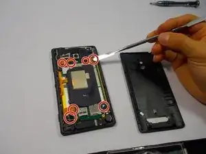 Удалите шесть винтов из телефона с помощью отвертки JIS #00.
