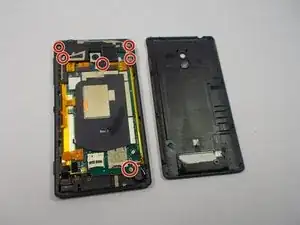 Удалите два винта JIS #00 с задней части телефона.