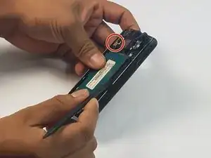 С помощью ногтя или нейлоновой лопатки снимите аккумулятор, приподняв его вверх в углублении нижнего правого угла.