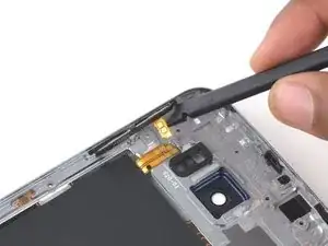 Используйте плоский конец лопатки, чтобы выпрямить и вынуть кнопки громкости из средней рамки.