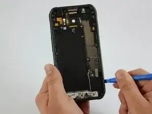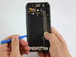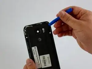 Вставьте пластиковый инструмент между рамкой телефона и задней крышкой в верхнем правом углу.