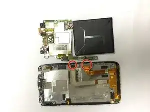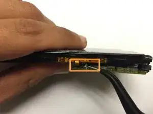 С помощью пинцета отсоедините гибкие кабели кнопки питания.