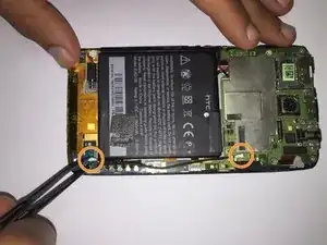 С помощью пинцета отсоедините антенну от основной платы к печатной плате.