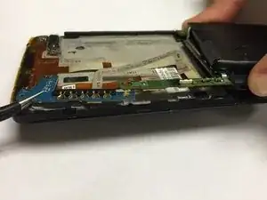 С помощью пластиковой лопатки аккуратно отделите дисплей от задней панели.