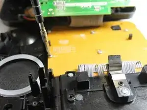 Выкрутите винт 5,6 мм с защёлки за экраном, как показано.