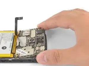 Возьмите материнскую плату за верхние углы и аккуратно поднимите её из корпуса телефона.