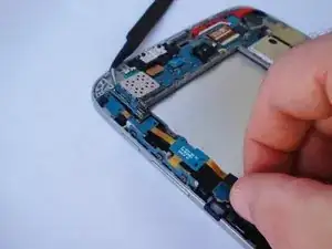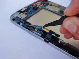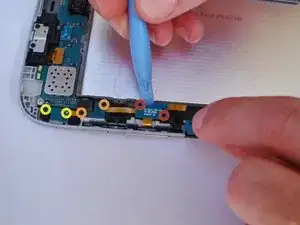 С помощью пинцета вытяните часть кабеля, расположенную за кнопками громкости, из паза.
