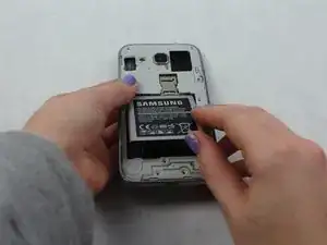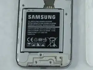 Найдите батарею в нижней части телефона. Батарея квадратная, плоская и помечена «SAMSUNG».