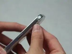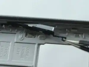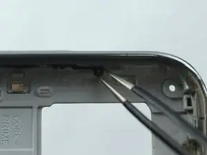 Пинцетом отогните оба резиновых крепления, удерживающих кнопку громкости в рамке.