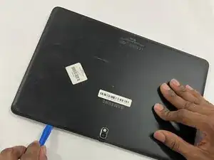 Снимите заднюю крышку планшета с помощью пластикового инструмента для открытия.