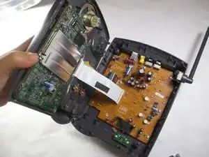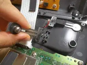 Найдите компонент зарядки внизу серого пластикового выступа в форме телефона. Он состоит из двух металлических деталей; каждая закреплена винтом Phillips #0 длиной 5 мм.
