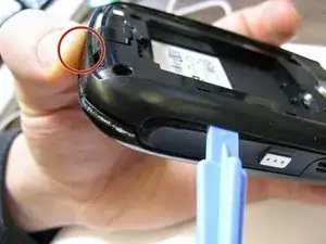 Вставьте инструмент для вскрытия между двумя половинами корпуса.