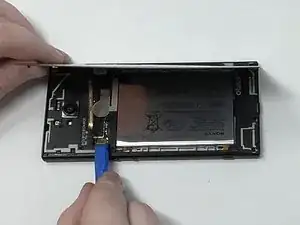 После снятия задней крышки используйте инструмент iFixit, чтобы отсоединить шлейф.