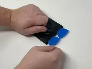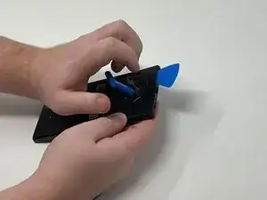 Подденьте вверх с помощью инструмента, чтобы начать отрывать заднюю крышку от клея, к которому она прикреплена.