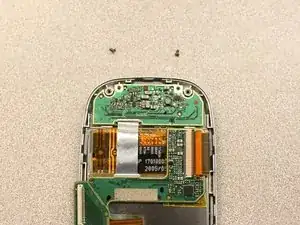 Открутите два винта Philips #0 длиной 3 мм снизу устройства, которые фиксируют жесткую гибкую плату к панели экрана.