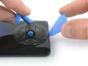 Приподнимите заднюю крышку с помощью присоски, чтобы создать небольшой зазор между крышкой и рамкой.