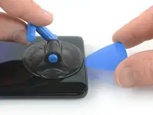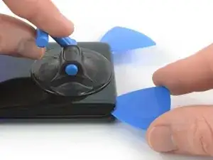Просуньте медиатор под чёрную клейкую ленту в нижнем левом углу катушки зарядки.