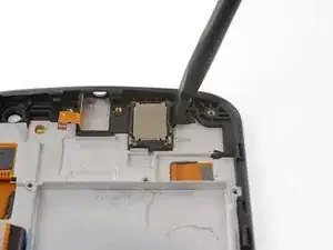 Положив плоскую часть лопатки на верхний правый край динамика разговора, подденьте, чтобы отделить его от корпуса.