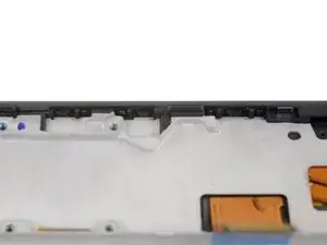 Используйте отвёртку T3 Torx, чтобы выкрутить девятнадцать одинаковых винтов длиной 3,1 мм, фиксирующих среднюю рамку.