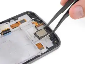 Динамик разговора фиксируется сильным клеем. При необходимости приложите тепло или несколько капель изопропилового спирта, чтобы ослабить клей и облегчить снятие.