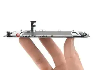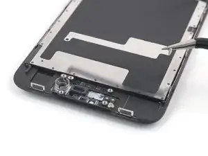Используйте пинцет, чтобы извлечь сборку сенсора Home/Touch ID, подняв ее через переднюю сторону дисплея.