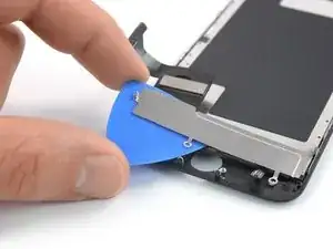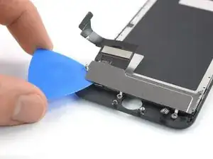 Используйте пинцет, чтобы поднять фронтальную камеру из ее разъема и повернуть ее влево, чтобы получить доступ к динамику слухового аппарата.