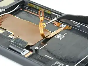 Продолжайте отдалять шлейф, пока он полностью не отклеится от задней стороны телефона.