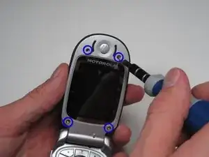Удалите четыре резиновые заглушки вокруг экрана с помощью булавки, чтобы получить доступ к четырем винтам.