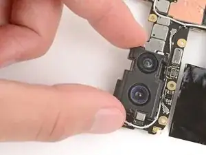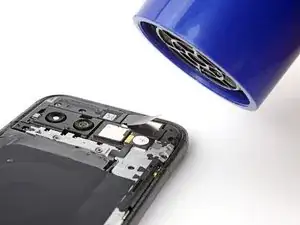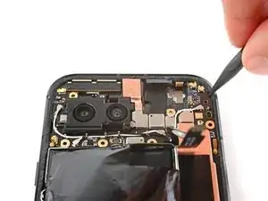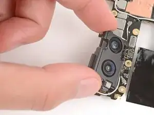 Если клей не отделяется, можно слегка нагреть заднюю крышку под выступом камеры с помощью фена или iOpener, чтобы размягчить клей.
