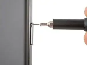 Вставьте инструмент для извлечения SIM-карты, биту или выпрямленную скрепку в отверстие для лотка SIM-карты на левом торце телефона и слегка нажмите, пока лоток не выйдет.