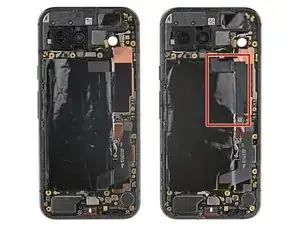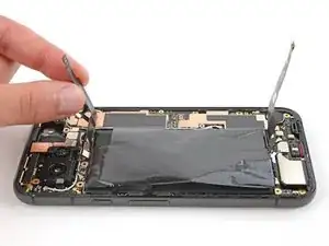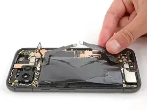 Отведите в сторону шлейфы аккумулятора и 5G mmWave, чтобы они не мешали работе с аккумулятором.