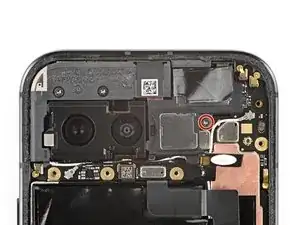 Используйте отвёртку Torx Plus 3IP, чтобы выкрутить винт длиной 4,3 мм, крепящий динамик-излучатель к корпусу.